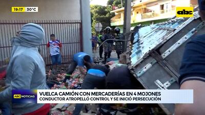 4 Mojones: vuelca camión con mercaderías tras evadir control