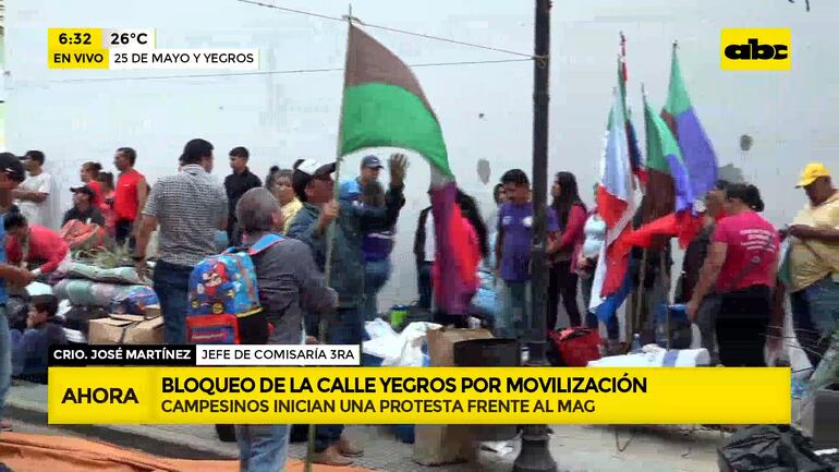 Este artículo tiene 1 año de antigüedad Un numeroso contingente de campesinos agremiados en la Coordinadora Nacional Multisectorial se manifiesta frente a la sede del Ministerio de Agricultura y Ganadería, en Asunción, en reclamo de reivindicaciones relacionadas a salud, educación, seguridad y la actividad agrícola.