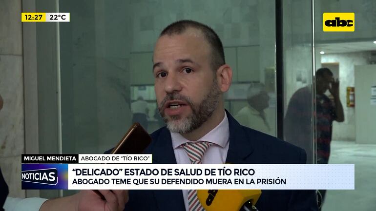 Este artículo tiene 1 año de antigüedad El abogado de Miguel Ángel Insfrán, alias Tío Rico, Miguel Mendieta, denunció que su defendido se encuentra en un delicado estado de salud, debido a que está con sangrados desde hace casi una semana. Según refirió Mendieta, el procesado por narcotráfico se había sometido a una cirugía, por lo que solo consumía alimentos específicos y suplementos, además de tener cuidados especiales. Sin embargo, esto no se estaría cumpliendo, debido al régimen de aislamiento con que cuenta Insfrán.
