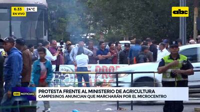 Este artículo tiene 1 año de antigüedad Un numeroso contingente de campesinos agremiados en la Coordinadora Nacional Multisectorial permanece instalado frente a la sede del Ministerio de Agricultura y Ganadería en Asunción. En consecuencia, se encuentran cerradas las calles Yegros, desde Presidente Franco hasta Cerro Corá, y 25 de Mayo, desde Independencia Nacional hasta Iturbe.