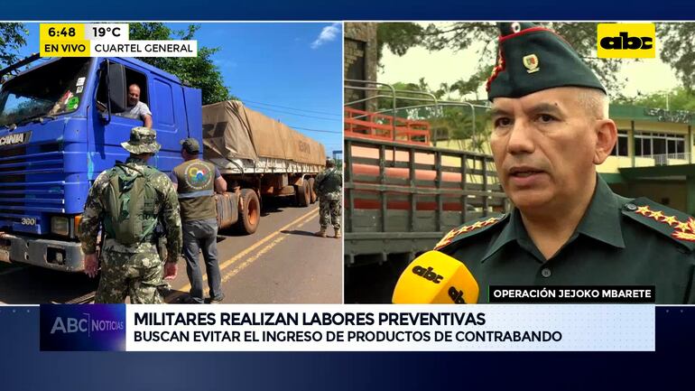 Este artículo tiene 1 año de antigüedad El Ejército paraguayo está colaborando en los controles preventivos para impedir el ingreso a Paraguay de productos de contrabando. El general Manuel Rodríguez, comandante del Ejército, explicó que el operativo denominado “Jejoko Mbarete” consiste en la asistencia en varios puntos del país que mantienen instituciones como la Dirección Nacional de Ingresos Tributarios para evitar el ingreso de productos principalmente agrícolas de forma ilegal desde el extranjero.