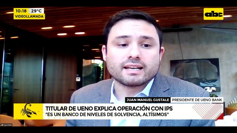 Este artículo tiene 1 año de antigüedad Juan Manuel Gustale, presidente del directorio de ueno bank, explicó que esta entidad es distinta a ueno Holding, donde el presidente de la República Santiago Peña es accionista, por lo que, según recalcó, no tiene vínculo societario con el banco. Asimismo, brindó detalles sobre cómo nace el holding tras la fusión de Credicentro y otras firmas del rubro.
