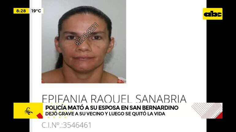 Este artículo tiene 1 año de antigüedad Un policía activo mató a su esposa en la compañía Heriberta Matiauda de la zona Alta de San Bernardino y posteriormente se quitó la vida. En el suceso también resultó gravemente herido un vecino con quien el uniformado habría sorprendido a su pareja.