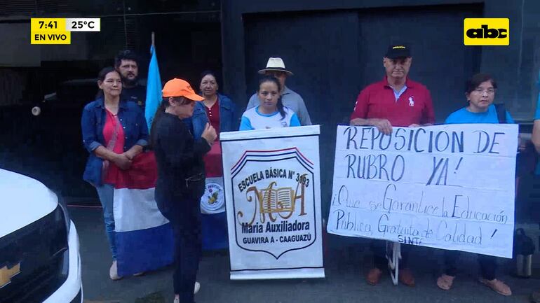 Este artículo tiene 1 año de antigüedad Un grupo de docentes y padres de familia se manifiestan frente al Ministerio de Educación y Ciencias (MEC). Solicitan reposición de rubros de docentes ya jubilados. Consideran que con esta situación precarizan aún más la educación pública.