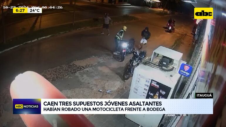 Este artículo tiene 1 año de antigüedad Tres jóvenes fueron detenidos pues son sindicados como presuntos asaltantes que operaban en la zona de Itauguá. Los mismos fueron identificados y cuentan con órdenes de captura. La detención se dio en la vía pública en el barrio Aldana Cañada de Capiatá por parte de policías del Grupo Lince y de la comisaría 21 Central. Aparentemente, los tres forman parte de la banda de asaltantes que se desplazan en moto y hace poco robaron un biciclo frente a una bodega.