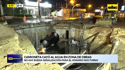 Avda. Eusebio Ayala: camioneta cayó al agua en zona de obras
