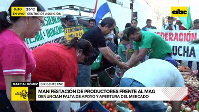 Este artículo tiene 1 año de antigüedad Agricultores agrupados en la Federación Nacional Campesina llegaron hasta la sede del Ministerio de Agricultura y Ganadería para protestar contra el abandono del Estado hacia los pequeños productores. En el marco de la movilización decidieron regalar la producción que no pudieron comercializar y fueron los propios funcionarios del MAG los que se beneficiaron con esta medida.