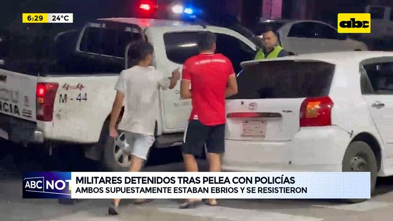 Este artículo tiene 1 año de antigüedad Dos efectivos militares aparentemente ebrios fueron detenidos tras resistirse a la identificación y uno de ellos incluso golpeó al personal policial. Los mismos fueron identificados y sorprendidos consumiendo bebidas alcohólicas y generando disturbios en las calles Avay y Tacuary de Asunción. Los dos militares guardan reclusión en su unidad esperando la decisión de la justicia.