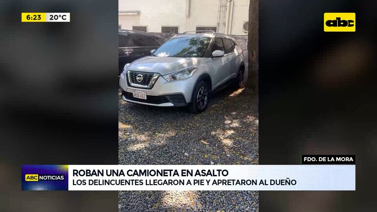 Este artículo tiene 1 año de antigüedad Una camioneta Nissan Kicks color plata 2018 fue robada tras un asalto en las calles Cecilio Báez y Cnel. Rafael Franco, Zona Norte de Fernando de la Mora. Según la denuncia en sede de la comisaría, la víctima llegó a la casa de su hermano y antes de ser recibido fue apretado por dos hombres que se manejaban a pie y con arma de fuego en mano le exigieron la entrega del vehículo. El propietario no se resistió y entregó su camioneta.