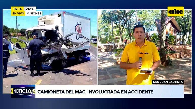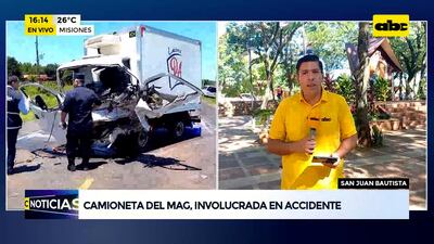 Este artículo tiene 1 año de antigüedad Una camioneta del Ministerio de Agricultura y Ganadería y un furgón de lácteos colisionaron alrededor del mediodía de este martes, a la altura del kilómetro 205 de la ruta PY01, en San Juan Bautista, Misiones. No se registraron víctimas fatales, según indicó el jefe de la Comisaría Primera, subcomisario Ramón Bacigalupo.