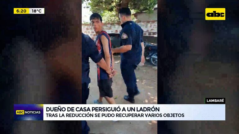 Este artículo tiene 1 año de antigüedad El propietario de una vivienda, tras ser avisado por sus vecinos por el robo de objetos de su domicilio, siguió al presunto autor y unas cinco cuadras del lugar del hecho redujo al hombre, quien tenía consigo los productos supuestamente del robo. Llamó a la policía para la entrega del supuesto autor quien está detenido en la comisaría 17 Central, San Isidro, Lambaré.