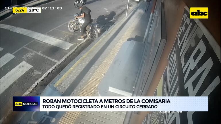 Este artículo tiene 1 año de antigüedad A solo una cuadra y media de la comisaria tercera de Luque un delincuente robo una motocicleta a plena luz del día. Todo quedó registrado en un circuito cerrado. La motocicleta YAMAZUKY, se encontraba estacionada sobre la calle comandante Peralta y General Aquino a escasos 150 metros de la comisaría 23. En la imagen del circuito cerrado se puede observar como el delincuente logra robar la motocicleta en menos de un minuto.