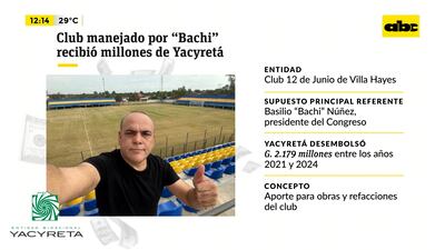 Club del “Clan Núñez” recibió más de G. 2.000 millones de la EBY: esta es la respuesta de Bachi