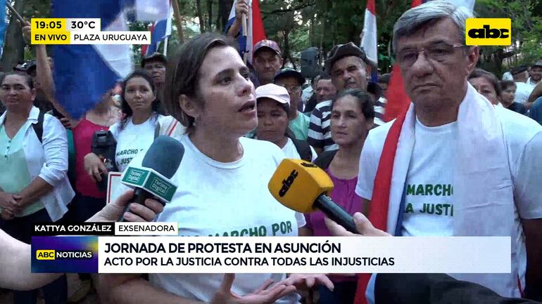 Este artículo tiene 1 año de antigüedad La marcha por la justicia y contra todas las injusticias arribó a la Plaza Uruguaya de Asunción, continuando su tercer día de protestas bajo la conducción de la exsenadora Kattya González. La movilización comenzó el domingo en Caacupé.