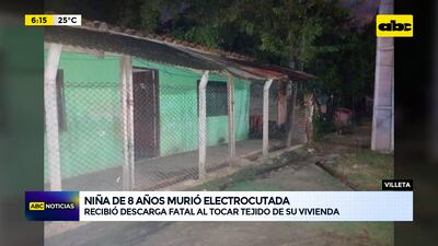 Este artículo tiene 1 año de antigüedad Un hecho trágico enluta a la ciudad de Villeta. Una niña de 8 años falleció en el barrio San Martín de Porres, luego de recibir una descarga eléctrica al tocar el cerco perimetral de tejido de alambre de su vivienda. Previamente, su hermano menor había recibido una pequeña descarga y fue llevado por la madre. La niña fue auxiliada por vecinos pero llegó sin signos de vida al Hospital General de Villeta.