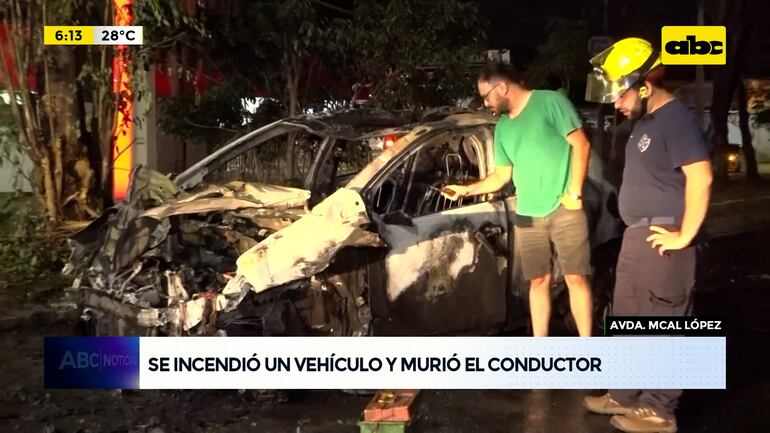 Este artículo tiene 1 año de antigüedad Un conductor falleció tras incendiarse su vehículo, luego de llevarse por delante un árbol del paseo central de la Avenida Mariscal López, en el límite entre Fernando de la Mora y Asunción. Aparentemente la alta velocidad fue la causa del accidente de tránsito.