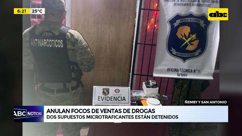 Este artículo tiene 1 año de antigüedad La policía antinarcóticos anuló focos de ventas de drogas y detuvo a dos presuntos microtraficantes de estupefacientes tras allanamientos de viviendas en el barrio Pa’i Ñu de Ñemby y en el barrio Las Mercedes de San Antonio.