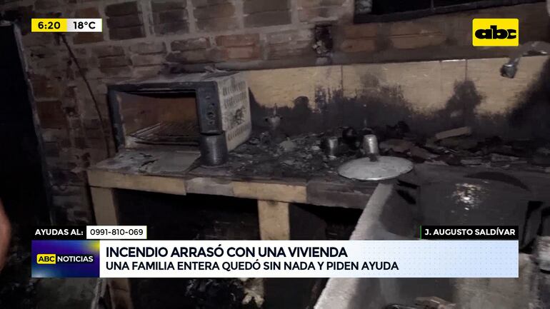 Este artículo tiene 1 año de antigüedad Un incendio arrasó en su totalidad con una vivienda y todo lo que estaba adentro en el Asentamiento 10 de Agosto, ubicado en la compañía Aldana Cañada, de J. Augusto Saldívar. Según el dueño de la casa, el siniestro habría sido ocasionado por un corto circuito en la instalación eléctrica de un aire acondicionado y el fuego ya fue incontrolable. La familia quedó sin techo, porque la estructura ya no sirve y la casa debe levantarse de nuevo.