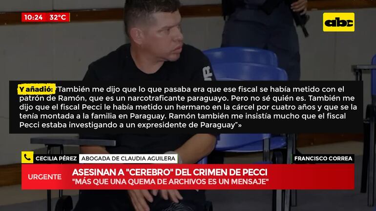 Este artículo tiene 1 año de antigüedad La Dra. Cecilia Pérez, abogada de la viuda del asesinado fiscal Marcelo Pecci, afirmó que el crimen del principal testigo del caso, más que una quema de archivo es un mensaje para la investigación. Indicó que con esto lo que se busca es frustrar cualquier tipo de declaración que lleve a los investigadores a dar con el autor intelectual.