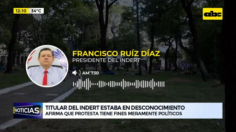 Este artículo tiene 1 año de antigüedad El presidente del Instituto Nacional de la Tierra (Indert), Francisco Ruiz Díaz, asegura que “ni el Indert ni la Policía tienen autoridad para ubicar a los manifestantes en una plaza” y aseguró no estar al tanto de este traslado. El numeroso grupo que llegó a la capital del país desde Caaguazú y Canindeyú solicita la compra de tierras, lo que no es factible, según el presidente de la institución, quien agregó que el fin de los manifestantes es político, ya que no se justifica que estén fuera de sus tierras por siete meses y tengan cómo mantenerse.