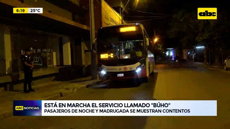 Este artículo tiene 1 año de antigüedad El nuevo servicio de transporte público denominado “Búho” ya está en plena marcha y los recorridos van desde Asunción hasta San Lorenzo o viceversa, conectando puntos clave, donde en la mayoría de los casos, los usuarios son trabajadores gastronómicos o gente que sale tarde de su trabajo. Los usuarios del servicio de transporte público de noche y madrugada llamado “Búho” están más que contentos por la línea habilitada, pues llegarán más temprano a destino y evitan otros costos como el pedido de plataforma digital