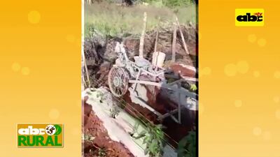 El productor Vidal Acuña, de la Colonia Yguazú, nos muestra su motocultor artesanal fabricado con un motor de motocicleta y que utiliza para la limpieza de su parcela hortícola como también para movimiento de suelo.