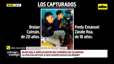 Este artículo tiene 2 años de antigüedad Dos jóvenes fueron detenidos como sospechosos de haber participado del asesinato de Óscar Baranda, guardia de Tecno Store, durante un asalto a la tienda que está en el barrio Villa Morra de Asunción. Se trata de Brian Colmán, de 20 años, y Fredy Zárate Roa, de 18 años. ‘’Reconocieron su participación en estos hechos’', expresó el Crio. Hugo Díaz, jefe de Investigación de Hechos Punibles.