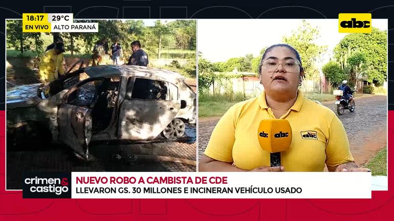 Nuevo robo a cambista de CDE: se llevan G. 30 millones e incineran vehículo usado en asalto