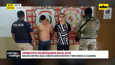 Este artículo tiene 1 año de antigüedad Detienen a sospechosos de matar a un guardia de seguridad en Ciudad del Este. El viernes último, dos sujetos a bordo de una motocicleta perpetraron un violento asalto en una estación de servicio del barrio San Miguel de Ciudad del Este. Un guardia de seguridad identificado como Derlis Ariel Delvalle (28) fue encañonado por uno de los delincuentes, pero reaccionó y fue baleado, y recibió un disparo en la cabeza.