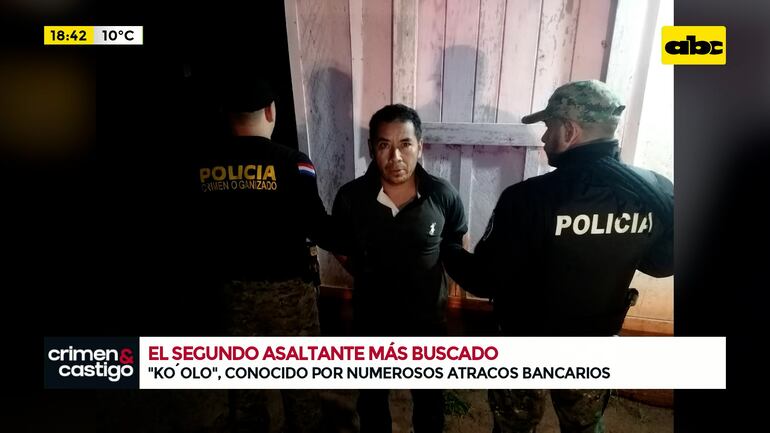 Este artículo tiene 1 año de antigüedad La Policía capturó esta madrugada a Héctor Paredes Ramírez, alias “Ko’ólo”, en una colonia de Canindeyú. Era considerado el segundo asaltante más buscado del Paraguay y en su prontuario resaltan atracos bancarios y a transportadoras.