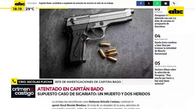 Este artículo tiene 1 año de antigüedad Un empleado de una estación de servicio fue acribillado con varios disparos de pistola calibre 9mm. El crimen ocurrió está mañana cuando el joven de 19 años acababa de salir de su trabajo y se dirigía a su casa ubicada en la colonia Mcal. López, Segunda Sección, del distrito de Capitán Bado. Los autores, aparentemente lo siguieron desde su trabajo y metros antes de llegar a su casa abrieron fuego contra su humanidad.