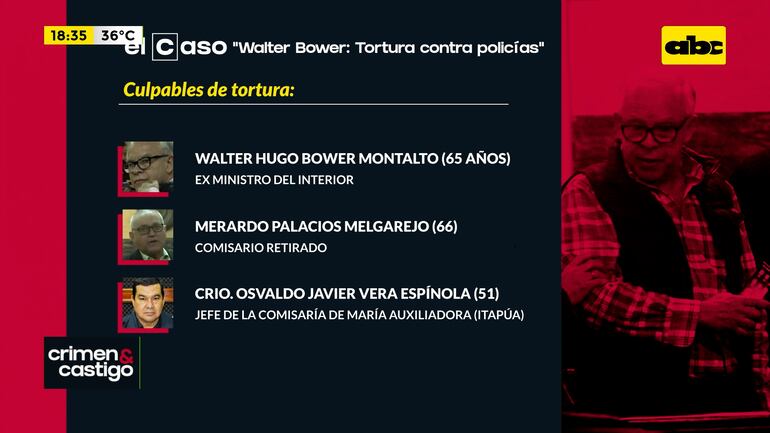 Este artículo tiene 1 año de antigüedad El exministro del Interior Walter H. Bower Montalto y los comisarios Merardo Palacios y Osvaldo J. Vera podrían ser condenados hasta a 25 años de cárcel, tras quedar probado que participaron de hechos de maltrato físico hacia dos policías, que realizaron un intento del golpe de Estado en contra del Gobierno del entonces presidente Luis Ángel González Macchi, en el 2000.