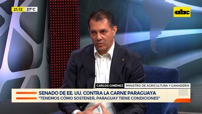 Este artículo tiene 1 año de antigüedad El Ministro Carlos Giménez asegura que la carne paraguaya es libre de aftosa y desacredita la postura del Senado estadounidense sobre su importación. La carne paraguaya sufrió una aplastante derrota en el Senado de los EE.UU., que se aprobó con 70 votos a favor y 25 en contra, una resolución de la Ley de Revisión del Congreso, que anula la habilitación que dio la administración Biden para las importaciones de carne vacuna desde Paraguay, según se informó.