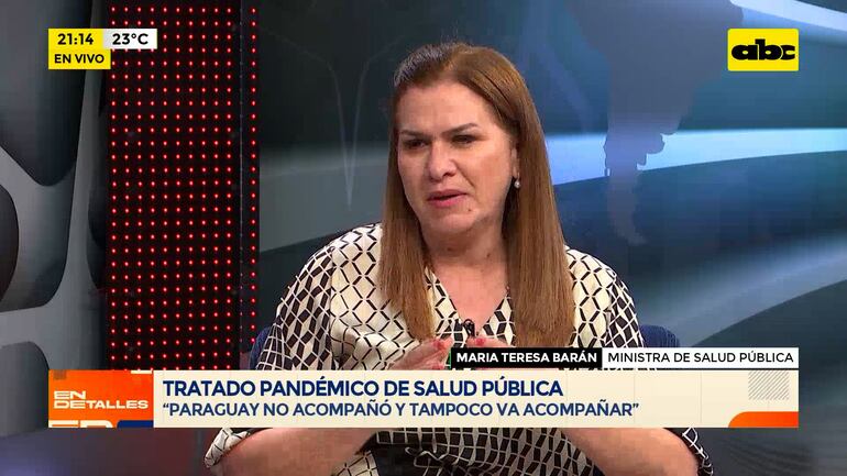 Este artículo tiene 1 año de antigüedad Paraguay no apoyará el tratado de pandemias promovido por la Organización Mundial de la Salud (OMS), cuyas negociaciones entraron en su etapa final. “Por eso decíamos que íbamos a defender la soberanía, que esto es como un instrumento que no debería ser vinculante. Paraguay fue uno de los países que más peleó a lado de Rusia, de China”, expresó la ministra de Salud María Teresa Barán.