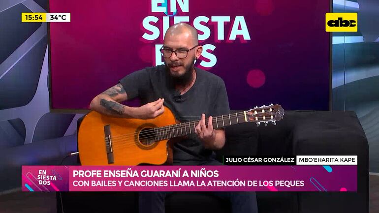 Este artículo tiene 2 años de antigüedad Julio César González, un profe que enseña guaraní hace 14 años en un colegio de Asunción, de una manera muy particular. Con canciones propias y bailes kachiãi, “Mbo’eharita kape” como lo conocen, sale del molde y se pone simpáticos anteojos para llamar la atención de los peques del preescolar y del 4º grado.