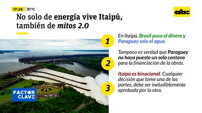 Este artículo tiene 2 años de antigüedad El tema que nos propone el editor de Energía de ABC, Ramón Casco Carreras el día de hoy es ‘’No solo de energía vive Itaipú, también de mitos 2.0′'.