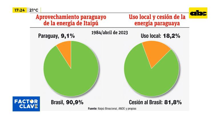 Este artículo tiene 2 años de antigüedad Apenas el 9,1% de la producción que acumuló Itaipú entre mayo de 1984 y abril de este año pudo aprovechar el Paraguay, según desprende de los datos suministrados por la entidad binacional, la ANDE y de fuentes propias. En esos 39 años, el sistema brasileño engulló nada menos que el 90,9% del total.