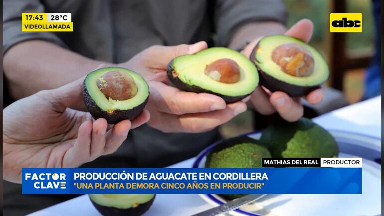 Este artículo tiene 2 años de antigüedad En Eusebio Ayala, departamento de Cordillera, se lleva a cabo la producción de aguacate, variedad Hass. Actualmente, se está comercializando en el mercado local, con miras a la exportación. La planta de aguacate alcanza su madurez de producción a los 5 años desde su cultivo, y pueden producir hasta por 30 años. La producción ideal es de unas 20 toneladas por hectárea, incluso pudiendo llegar a 40 toneladas por hectárea, dependiendo del manejo fitosanitario brindado.