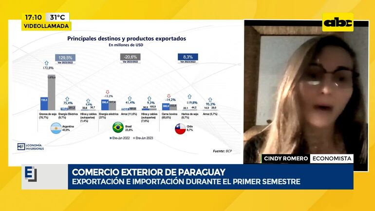 Este artículo tiene 2 años de antigüedad Nos acompaña la economista Cindy Romero para hablarnos acerca del comercio exterior en Paraguay, los datos de exportación e importación del primer semestre.