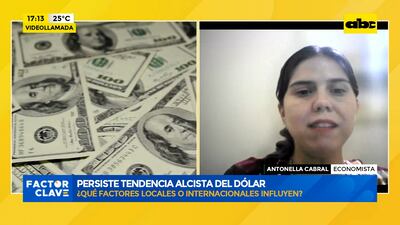 Este artículo tiene 2 años de antigüedad Alguno agentes estiman que el dólar seguirá esta tendencia de fortalecimiento probablemente hasta los primeros meses del 2024 y que incluso superaría la barrera de los G. 7.500. La economista ,Antonella Cabral. nos habla más sobre la tendencia alcista del dólar.