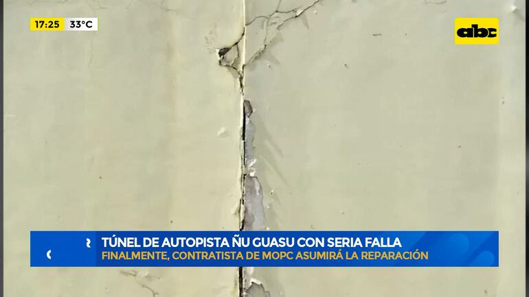 Este artículo tiene 2 años de antigüedad El Consorcio Tecnoedil S.A. - Heisecke S.A. - Ocho A S.A., que se encargó de construir el túnel de la autopista Ñu Guasu, finalmente tendrá que reparar la falla que se registró en la pared del paso a desnivel y sin ningún costo al MOPC, según informó ayer el viceministro de Obras, José Espinosa. El arreglo se hará “lo antes posible”, resaltó el alto funcionario.