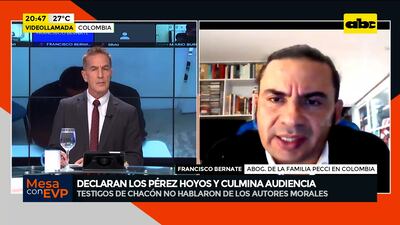 Este artículo tiene 2 años de antigüedad Los hermanos Andrés y Ramón Pérez Hoyos, condenados por el asesinato del fiscal antidrogas Marcelo Pecci fueron interrogados este viernes y de esa forma el juicio llega al estadio de alegatos finales. “No decepcionó, pero sorprendió el nivel de agresión”, indicó Francisco Bernate, abogado de la familia Pecci en Colombia.