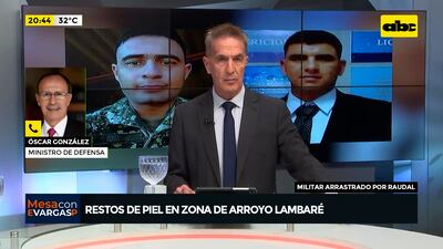 Este artículo tiene 2 años de antigüedad “Un personal que estaba por el arroyo encontró un material difuso, pero me indican que es un material biológico de origen desconocido aún”, expresó el ministro de Defensa, Óscar González. El equipo de búsqueda de la Armada Paraguaya encontró restos de piel, y se presume que serían de Alexis Sosa, militar desaparecido el 2 de noviembre tras ser llevado por un caudaloso raudal hasta el arroyo Lambaré.