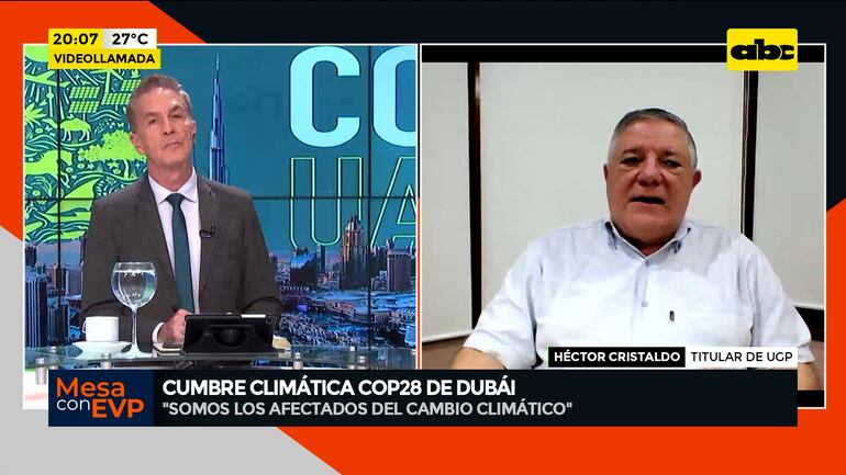 Este artículo tiene 2 años de antigüedad El próximo 30 de noviembre líderes de todo el mundo se reunirán en Dubái, Emiratos Árabes Unidos, para debatir cómo frenar el impacto del cambio climático sin frenar el desarrollo de los países. “Paraguay es un país de muy baja emisión, 0,1% de todos los gases de efecto invernadero a nivel mundial, somos un país de energía hidroeléctrica renovable, tenemos una agricultura sostenible”, expresó Héctor Cristaldo, titular de UGP.