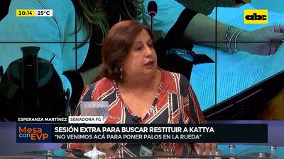Este artículo tiene 1 año de antigüedad Representantes de la oposición en la Cámara de Senadores solicitaron hoy formalmente que se convoque para mañana una sesión extraordinaria, a fin de revertir la expulsión de la opositora Kattya González. “Se hace la convocatoria y comenzamos a hablar con todos los sectores de tal manera a que mañana tengamos los 23 votos que nos permitan tener el quórum correspondiente”, expresó la senadora Esperanza Martínez.