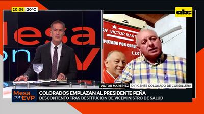 Este artículo tiene 1 año de antigüedad Dirigentes cartistas de Cordillera cuestionaron al presidente de la República, Santiago Peña, porque destituyó, por una supuesta disputa interna, al seccionalero Miguel Olmedo Leites del Viceministerio de Atención en Salud Pública. “Se iba a llegar a una compra de USD 360 millones de productos fármacos y ahí le exigieron al viceministro poner su visto bueno para que pueda seguir el tema y él se negó. Pidió un informe a la ministra y eso fue el detonante para que le digan al presidente de la República que Miguel Olmedo no quiso firmar”, expresó Víctor Martínez, dirigente colorado de Cordillera.