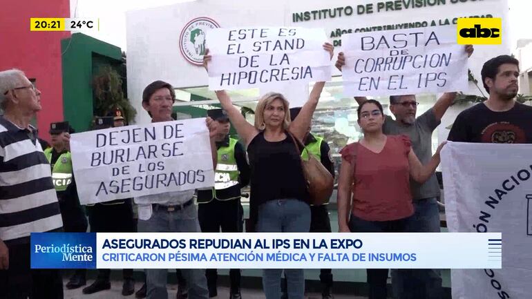 Este artículo tiene 2 años de antigüedad En el último día de la Expo 2023, asegurados del IPS se manifestaron en contra de las autoridades administrativas frente al stand de la previsional. Criticaron la pésima atención sanitaria y la falta de medicamentos.
