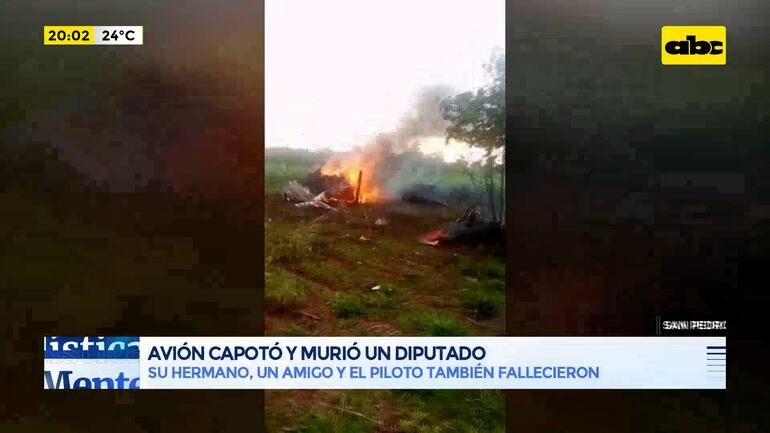 Este artículo tiene 2 años de antigüedad El diputado colorado Walter Harms, su hermano Carlos, un amigo y el piloto de la avioneta en la cual viajaban, murieron cuando la aeronave capotó y se incendió en la localidad de Guajayvi. Los mismos regresaban del cumpleaños del gobernador de San Pedro, Freddy D’Ecclesiis.
