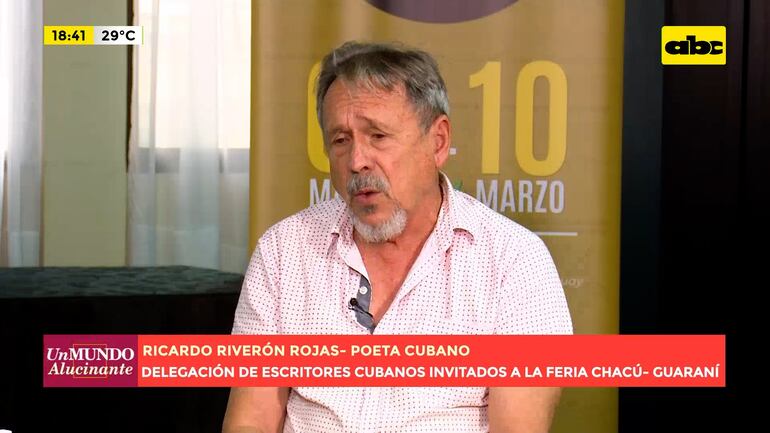 Este artículo tiene 1 año de antigüedad En piso con el poeta cubano Ricardo Riverón Rojas. ‘’La cultura es muy diversa, desde la música hasta la literatura’', expresó. La delegación de escritores cubanos fue uno de los invitados a la Feria Chacú-Guaraní.