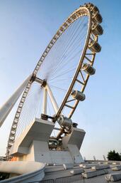 La rueda gigante y su juego de luces se siguen distinguiendo en medio de los inmensos rascacielos del rico emirato del Golfo, en el corazón de una isla artificial llamada Bluewaters, que alberga atracciones turísticas, elegantes restaurantes y lujosos apartamentos.